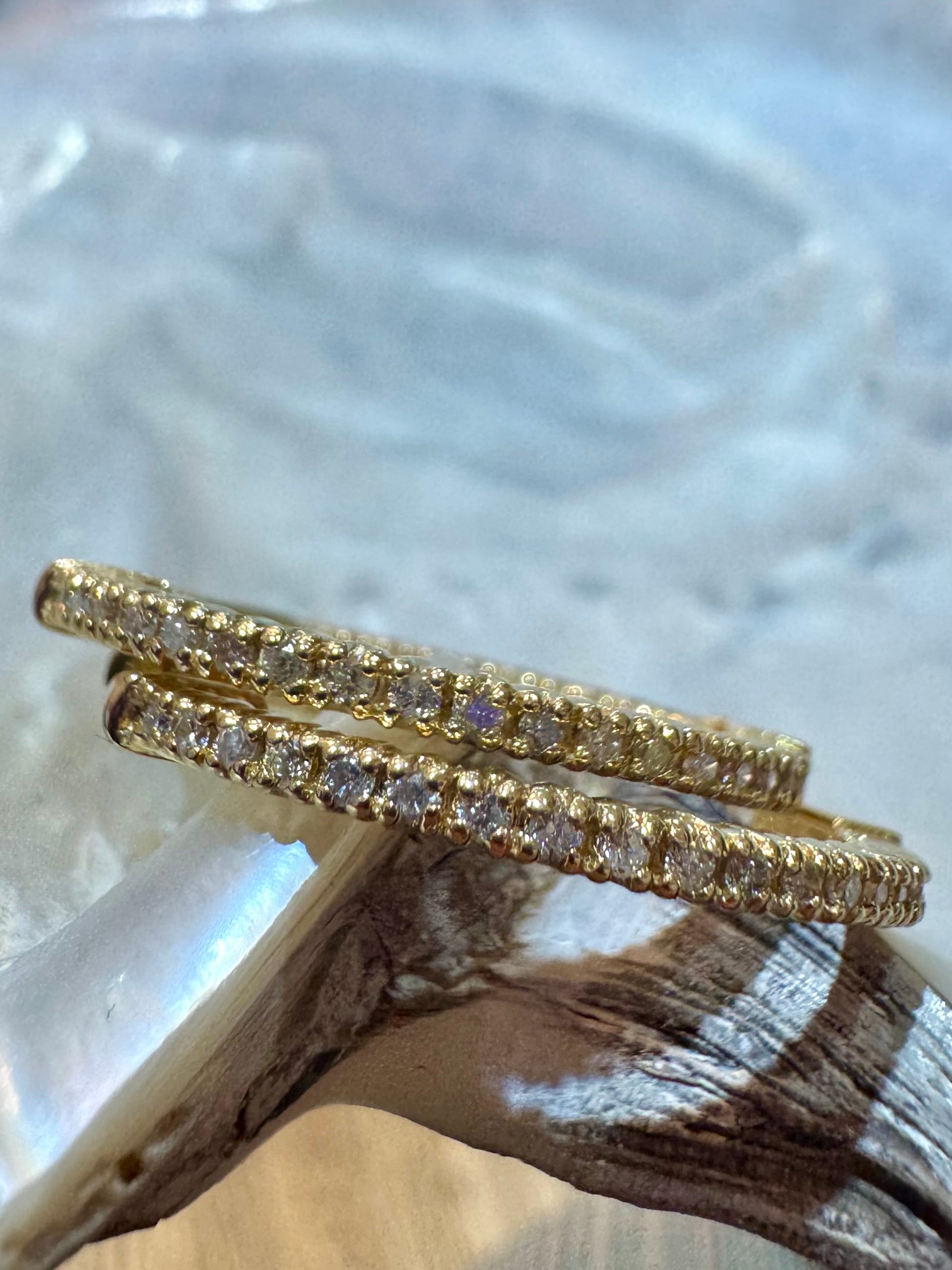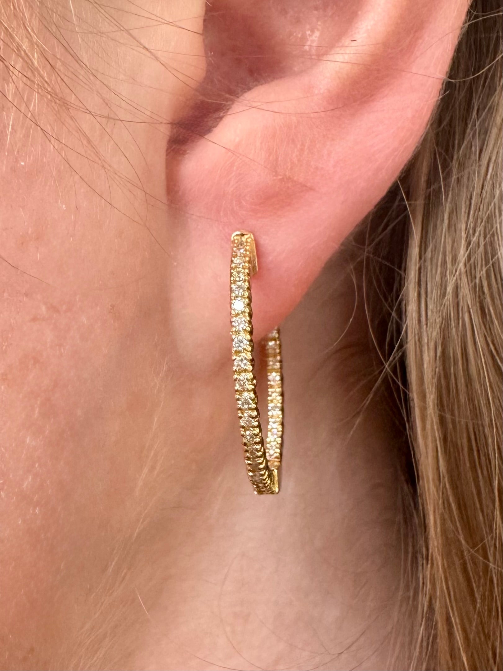 Elevate your everyday elegance with these timeless diamond hoop earrings. Crafted in 14K yellow gold, each earring features 0.60 carats of sparkling diamonds set in a versatile medium hoop design. Perfect for layering or wearing solo, these pieces transition seamlessly from office to evening, offering the refined sophistication of fine jewelry with the practicality of daily wear. A wardrobe essential that combines enduring style with exceptional craftsmanship.