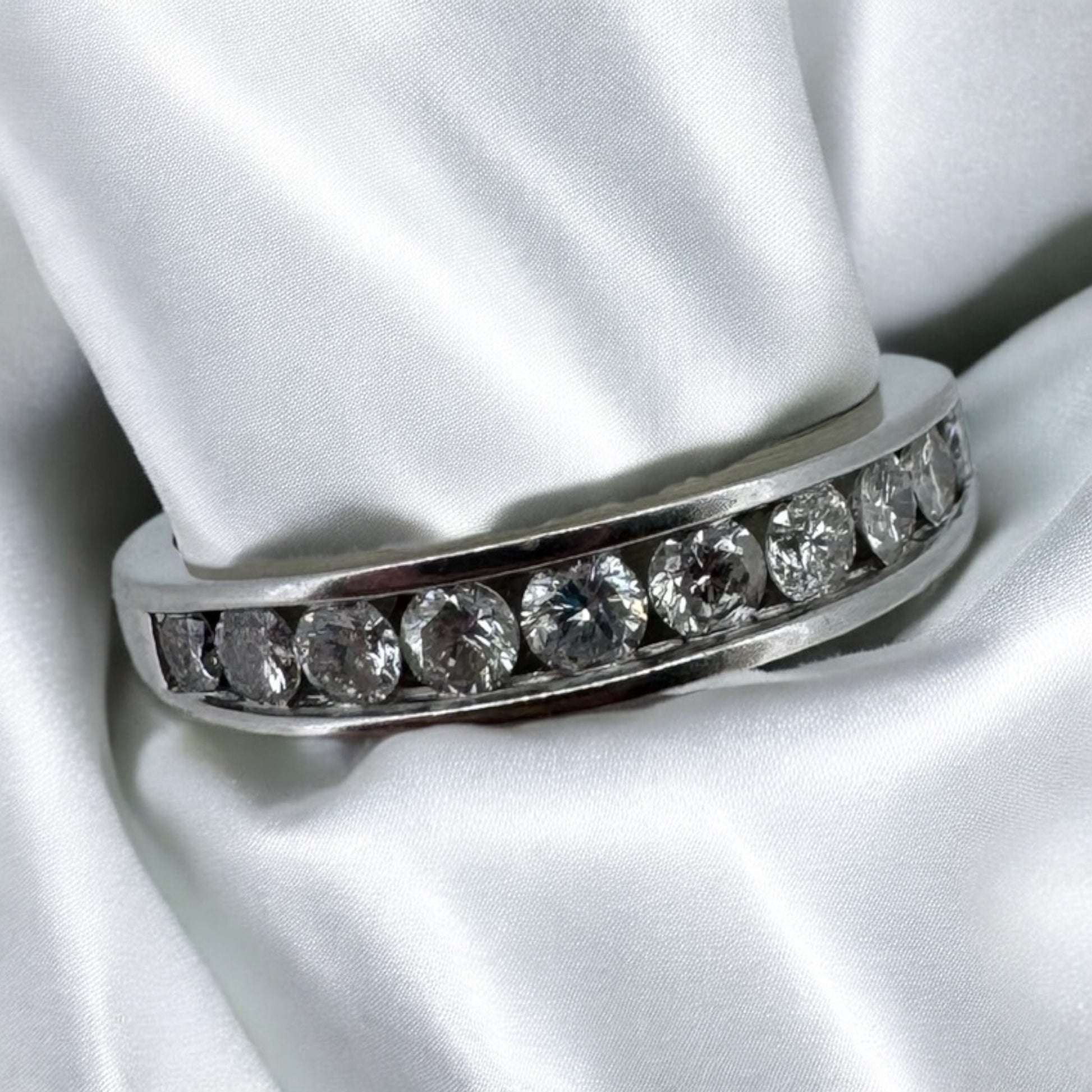 Celebrate your special moments with this 10-stone channel-set anniversary band crafted in 14K white gold. Featuring a total of 0.50 carats of sparkling stones, this elegant band offers lasting beauty and a comfortable fit. Its timeless design makes it a meaningful gift to honor your journey together.