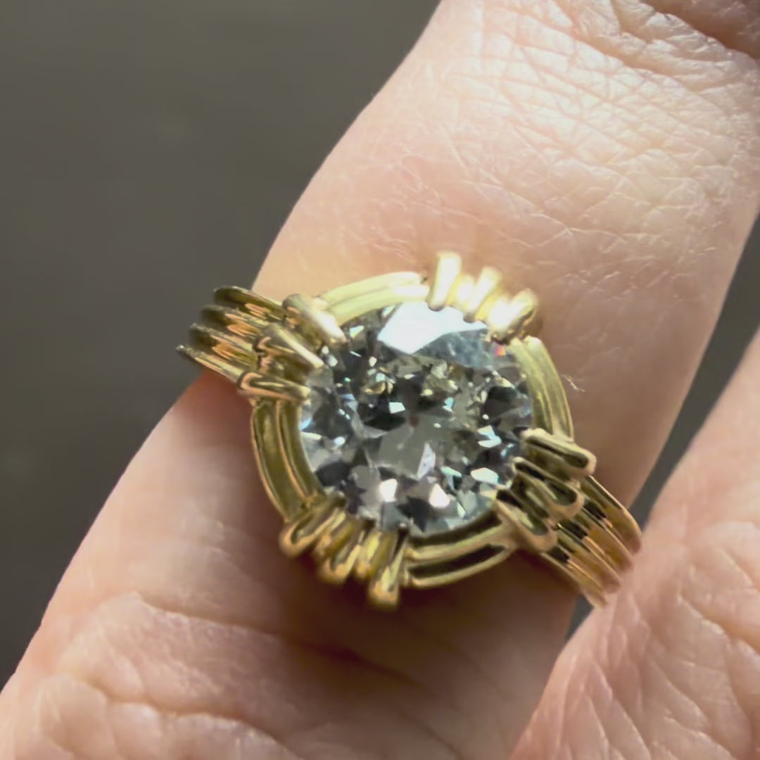 18K Bold Sculpted Diamond Solitaire Ring - Retro