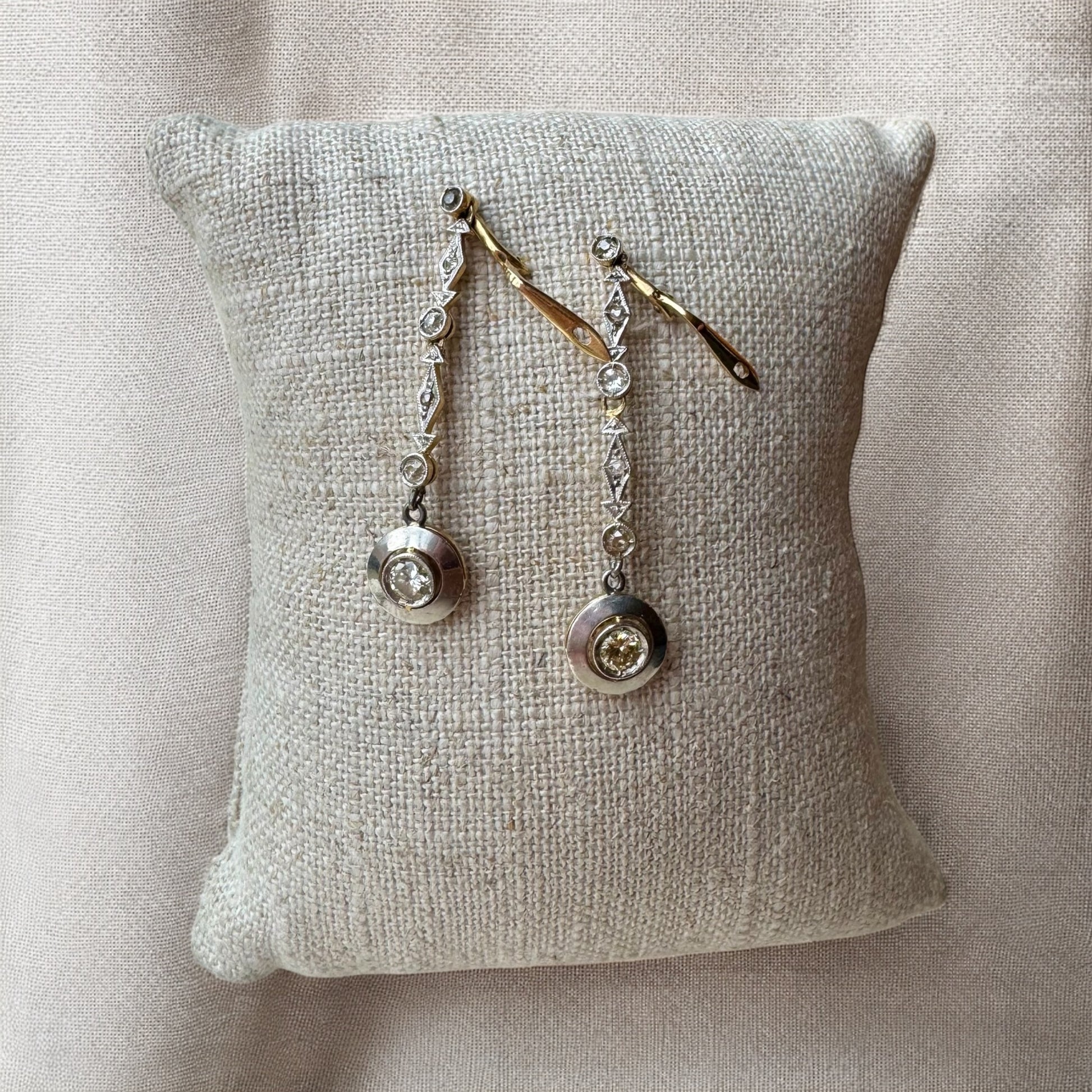 18K/Platinum Diamond Dangle Earrings - Art Deco