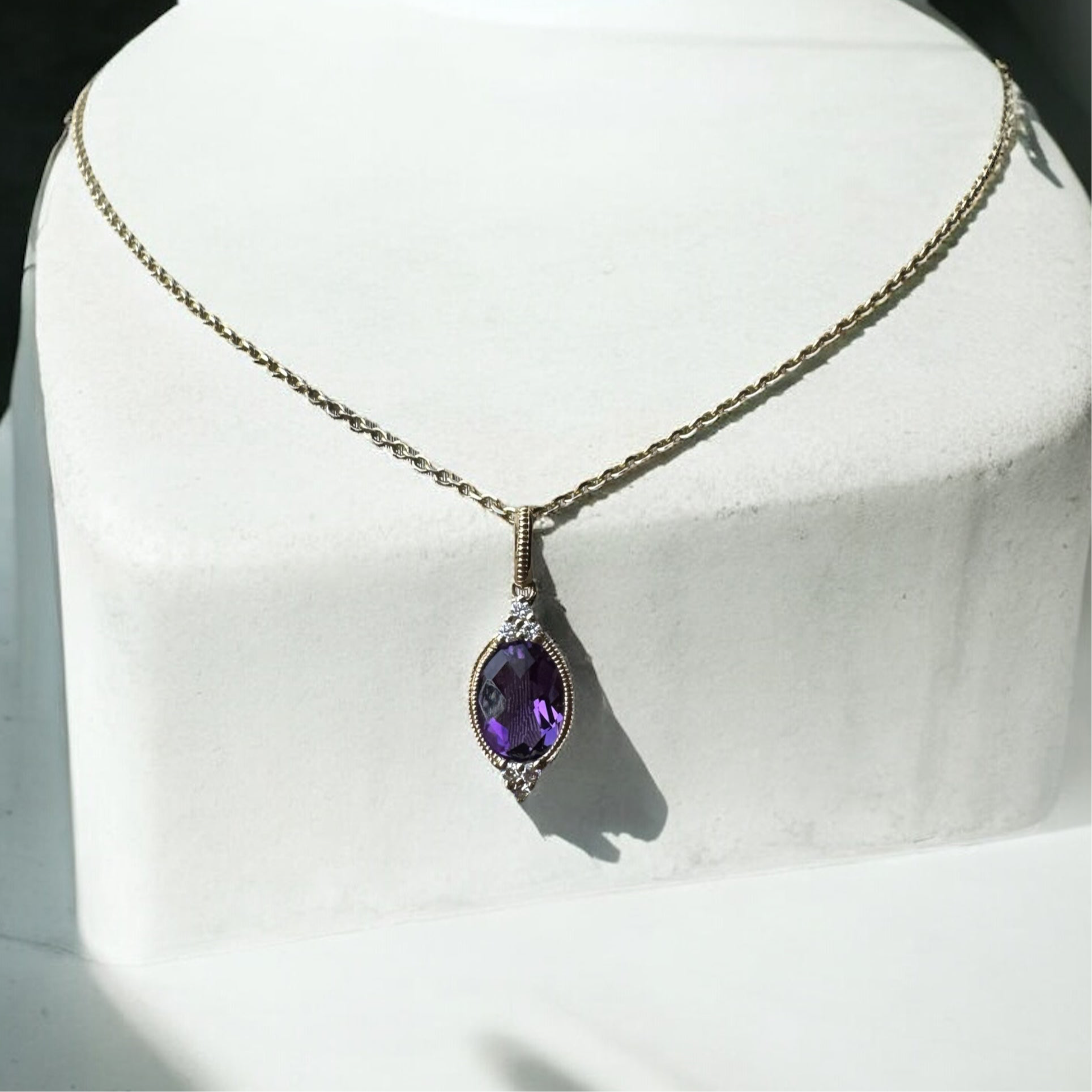 Amethyst Drop Pendant with Diamond Accents - 14K Yellow Gold