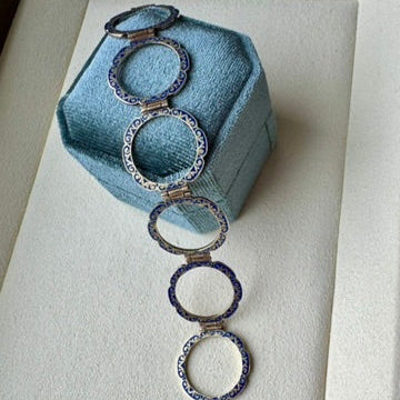 This extraordinary antique 14K gold convertible ring-to-bracelet is a rare treasure of design and craftsmanship. Created from articulated links, each hand-enameled and finely engraved, the piece transforms effortlessly from a bold statement ring into a graceful bracelet. Its ingenious construction and remarkable detail showcase the artistry of a bygone era, making it a true collector’s piece. Elegant, versatile, and utterly unique, this jewel embodies both innovation and timeless beauty—an heirloom worthy of admiration for generations to come.