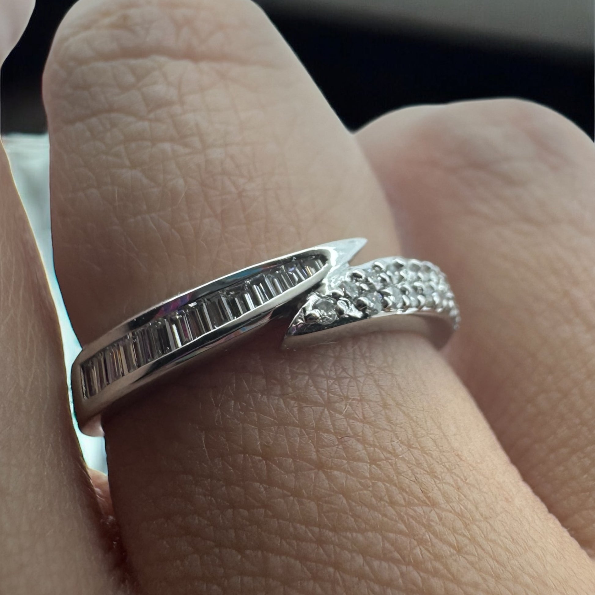 This elegant 18K white gold band features a stunning combination of baguette and round diamonds totaling 0.50 carats. Its refined design offers a timeless sparkle that complements any style, making it a perfect symbol of lasting commitment or a beautiful addition to your jewelry collection. Comfortable to wear and crafted with care, this band brings both sophistication and everyday elegance to your look.