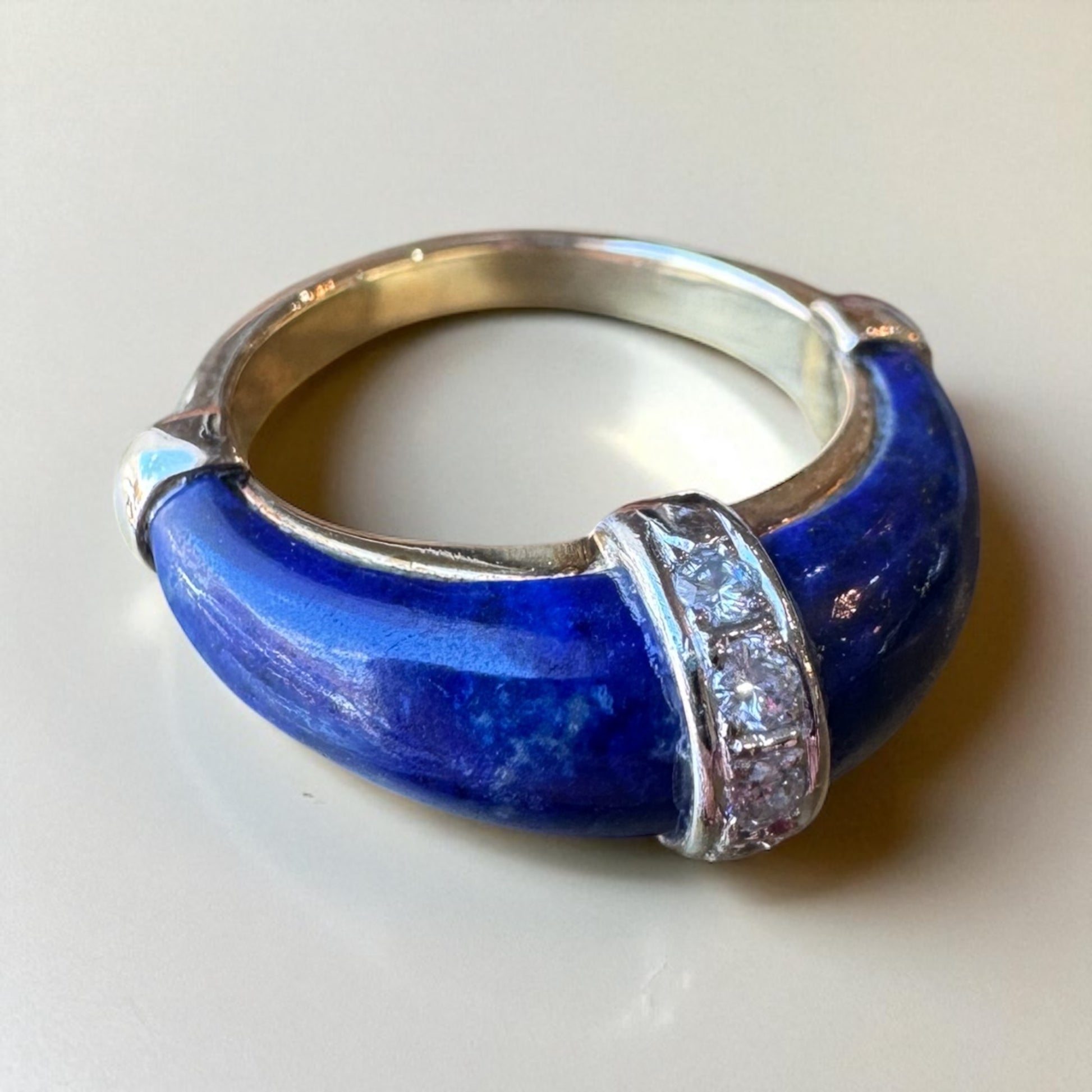 Blue Lapis and Diamond Ring - 14K Yellow Gold