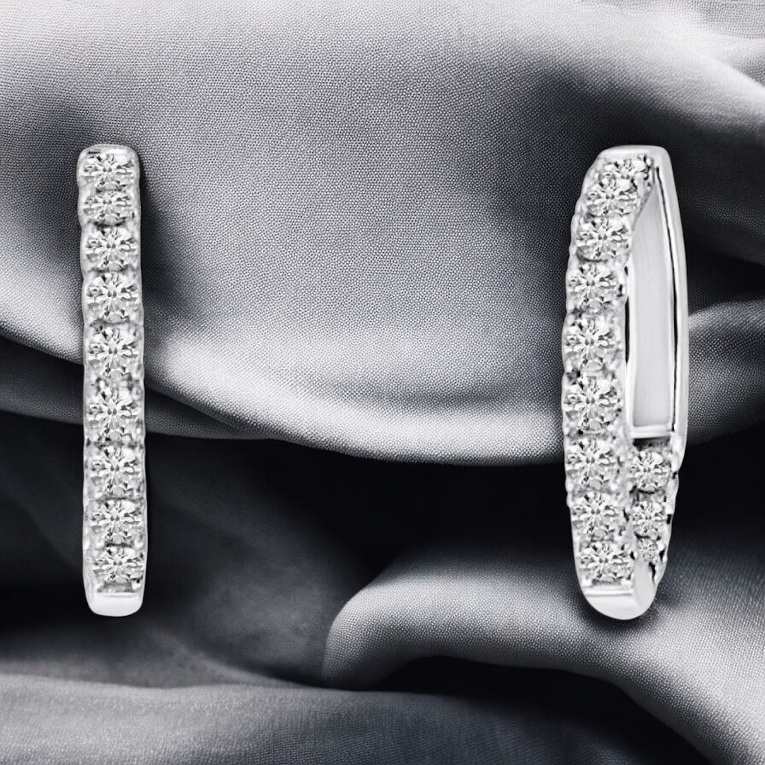 These 14K white gold oval hoops sparkle with 0.92 carats of diamonds, offering a medium size perfect for everyday elegance.