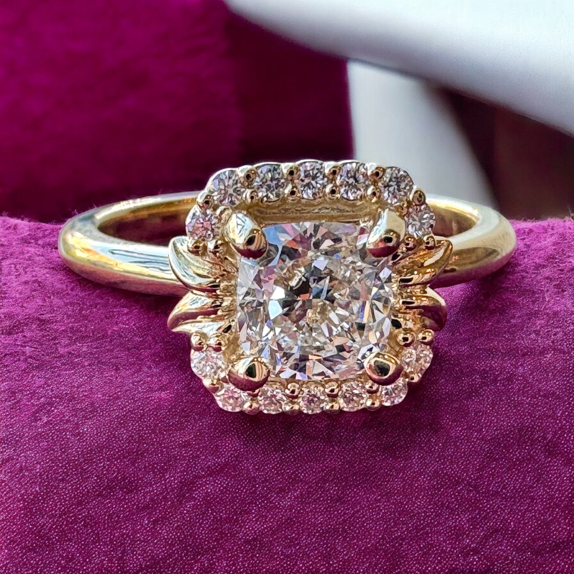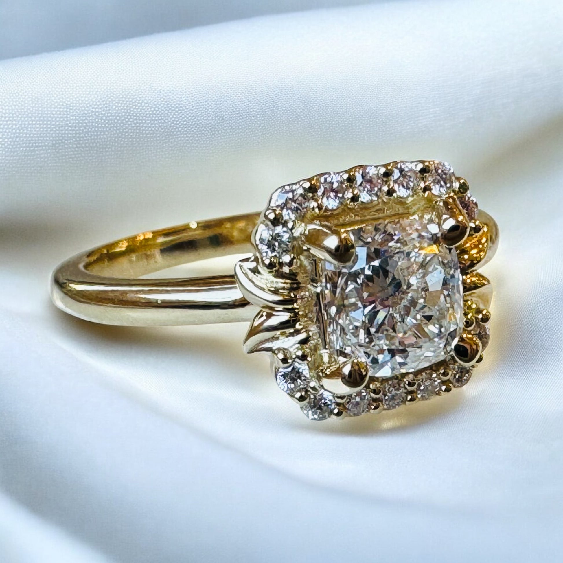 Cushion-Cut Diamond Halo Engagement Ring - 14K Yellow Gold