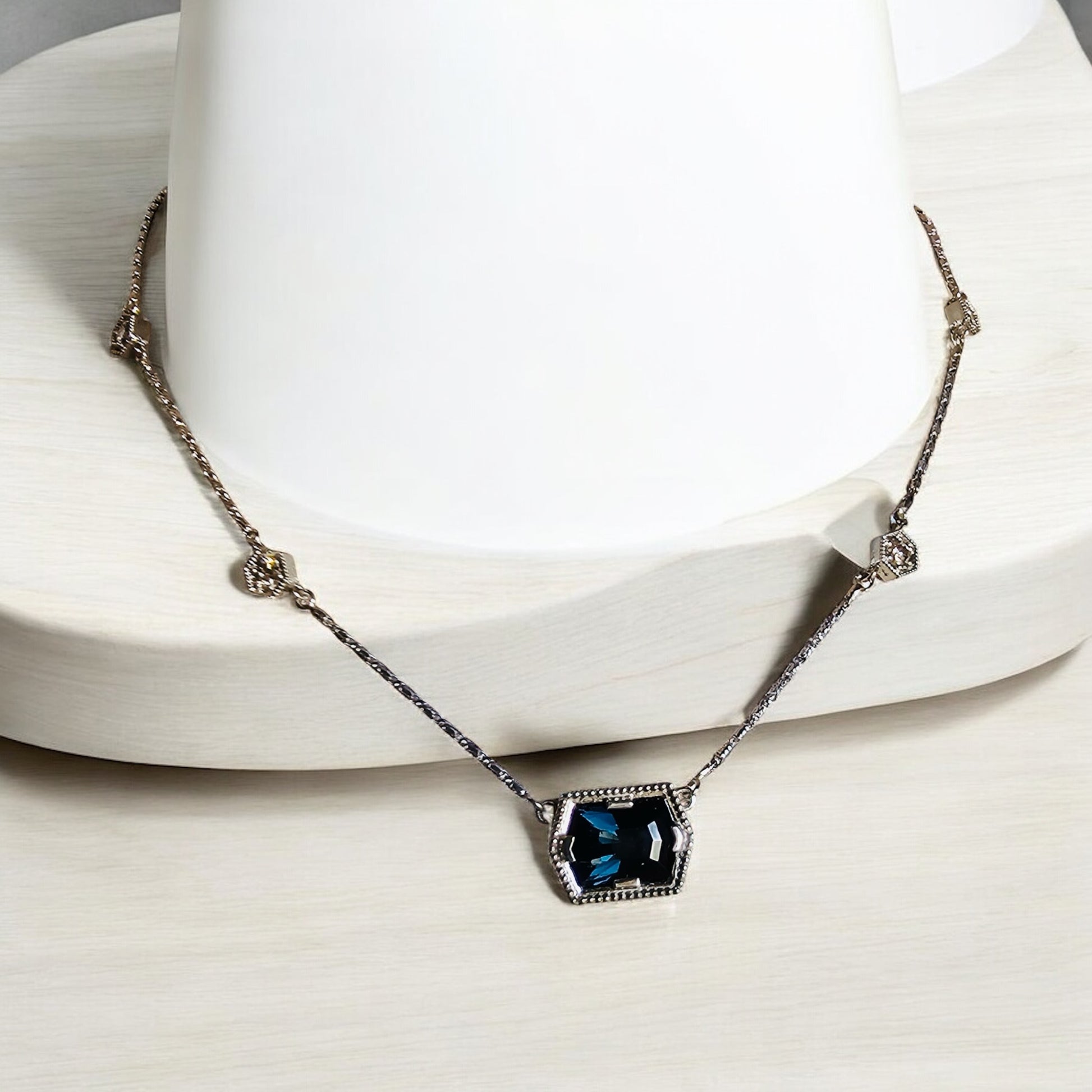 This Deco-Inspired Spinel Necklace features a stunning 1.39ct fantasy-cut dark blue spinel accented by 0.24ctw sparkling diamonds, all set on a 20" chain. Its unique design adds elegance and a touch of vintage charm, perfect for elevating any outfit with timeless sophistication.