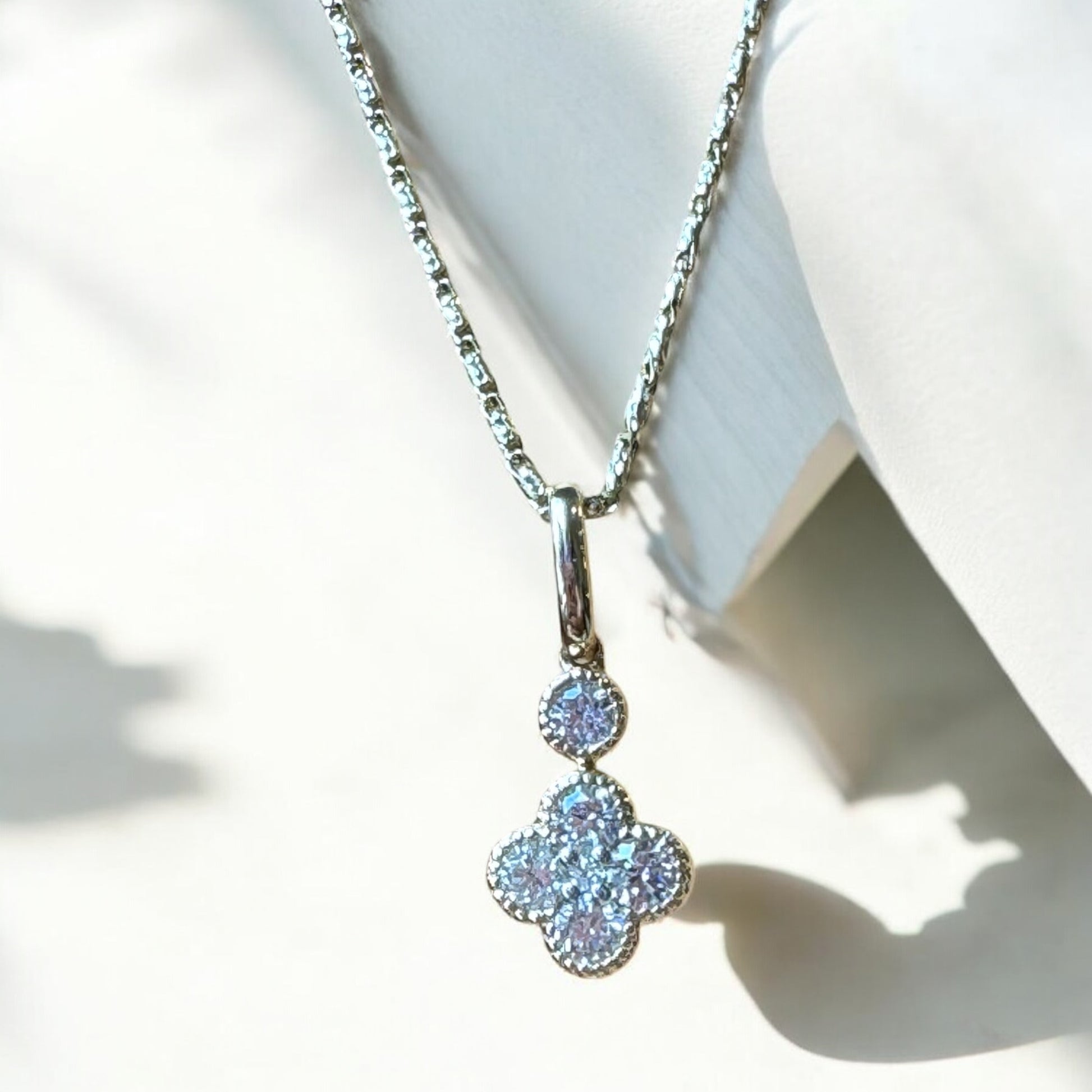 Diamond Clover Pendant on Razo Chain - 14K Yellow Gold
