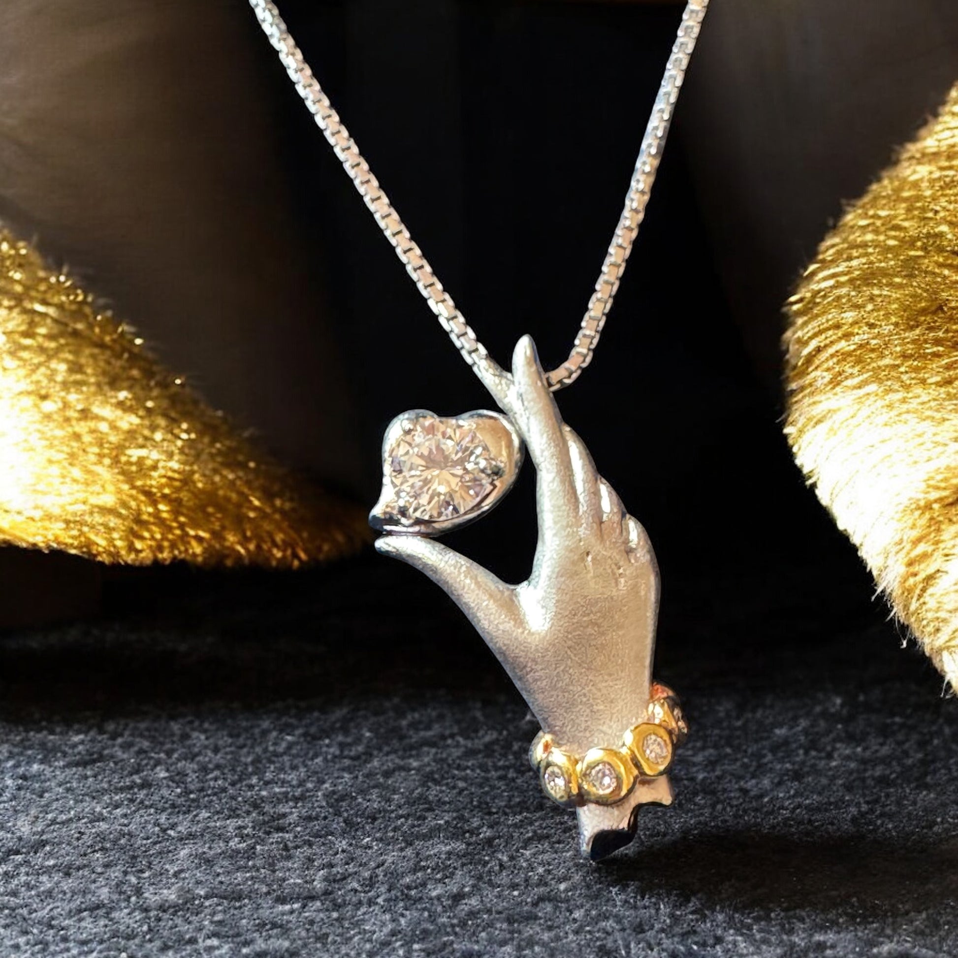 Diamond Hand Pendant Necklace - 18K Yellow Gold and Platinum