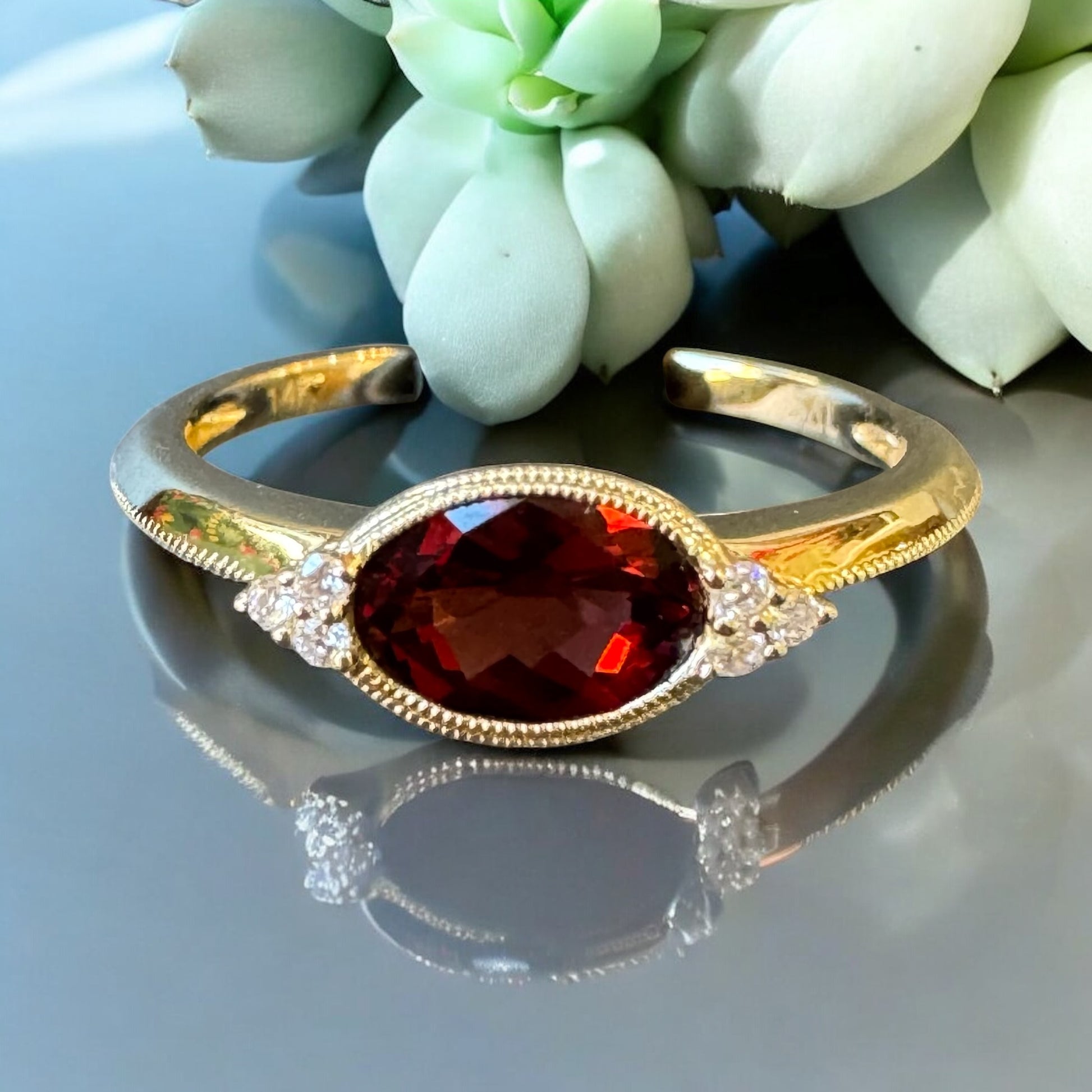 East/West Oval Garnet Ring - 14K Yellow Gold