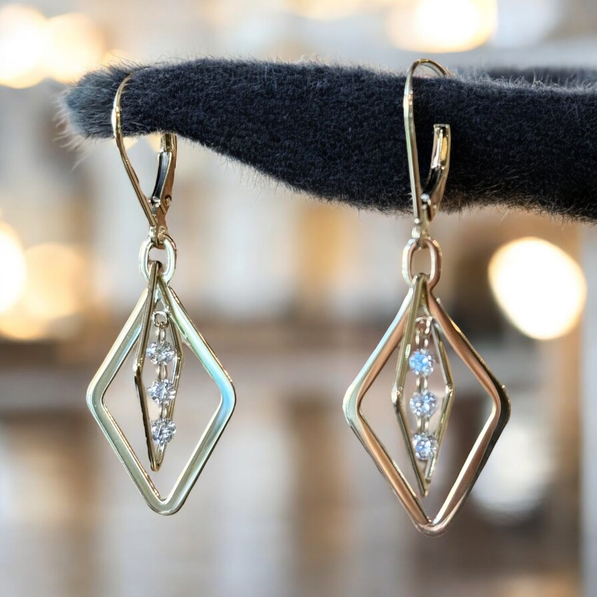 These Geometric Dashing Diamond Dangle Earrings in 14K yellow gold feature a total of 0.30 carats of diamonds, offering a subtle yet stunning sparkle. Their modern geometric design provides a versatile accessory that complements any style, whether for everyday wear or special occasions. Crafted with care, these earrings are a beautiful way to add elegance and confidence to your jewelry collection.