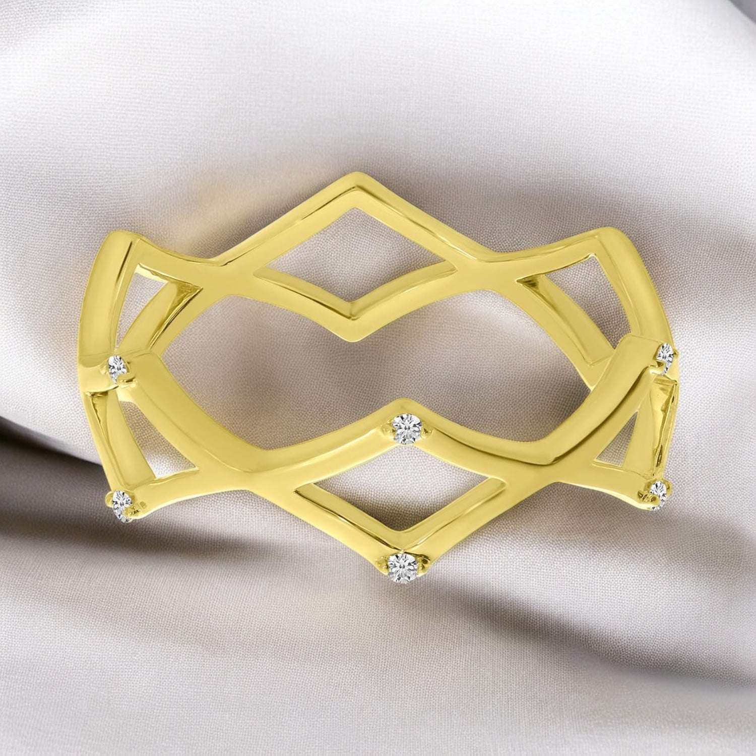 Gold and Diamond Geometric Band - 14K Yellow Gold