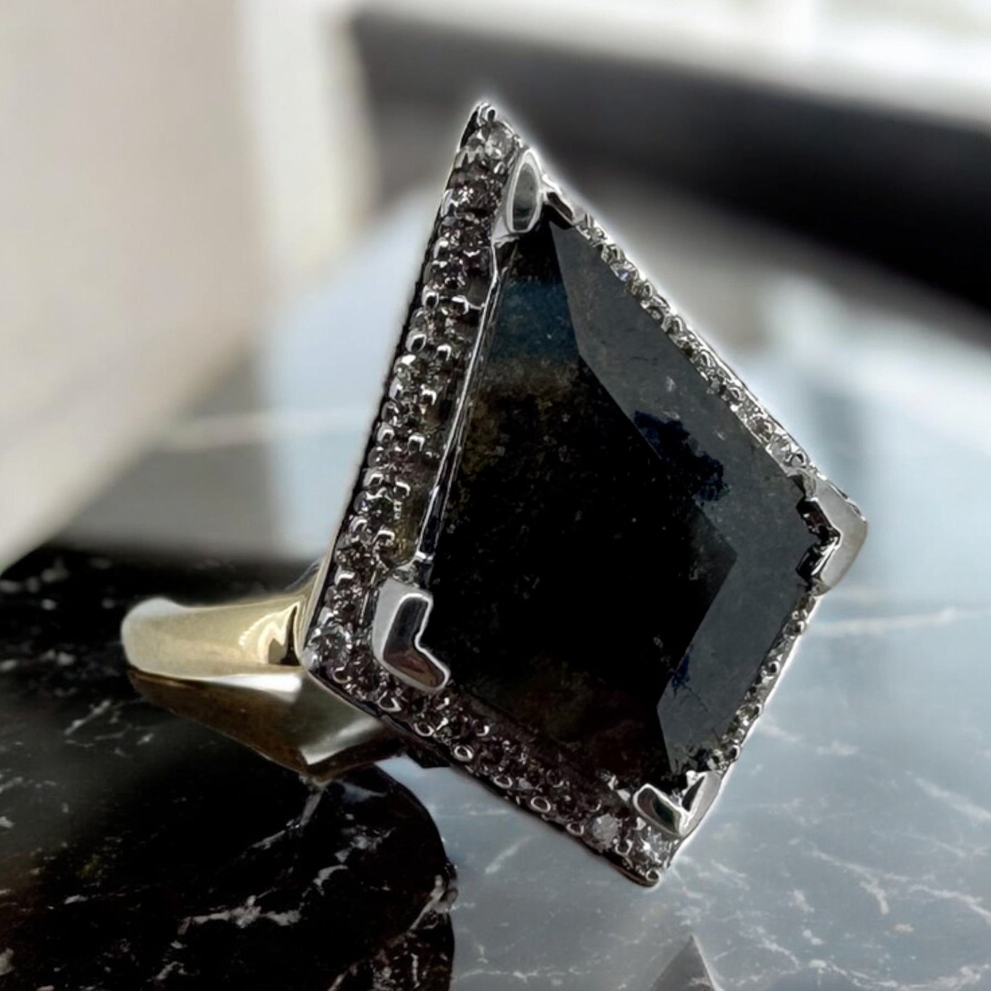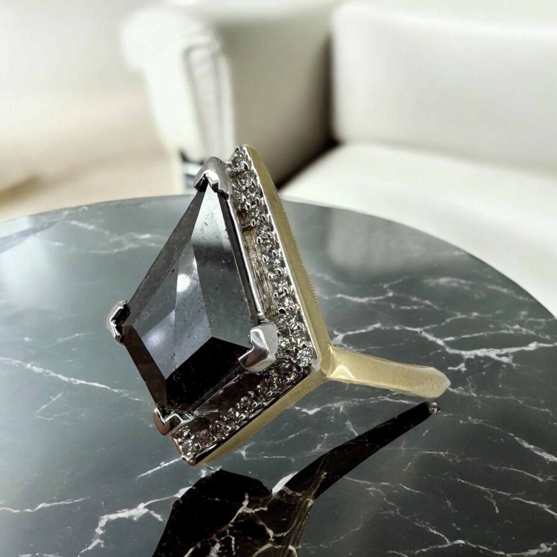 Kite-Shape Salt and Pepper Diamond Ring - 14K Yellow Gold