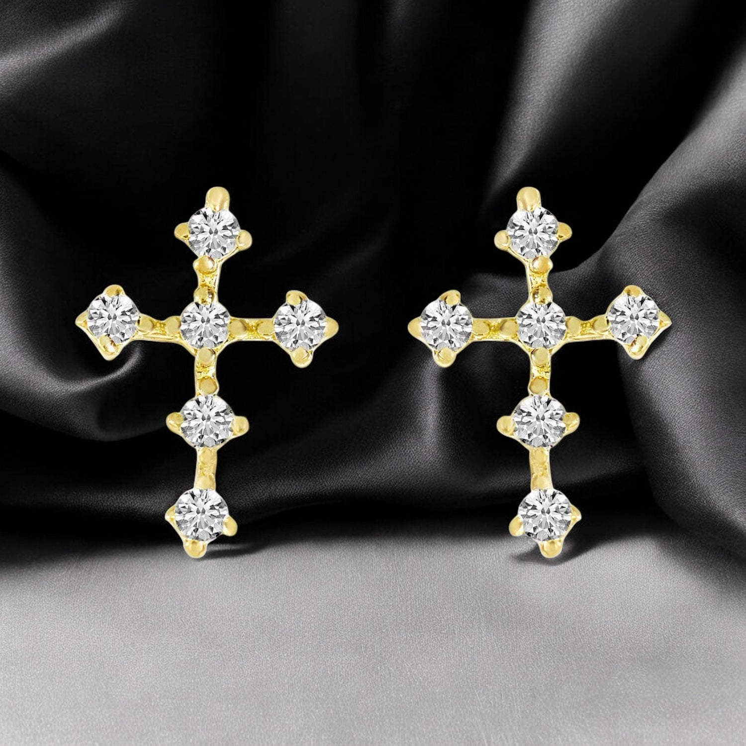 Mini Diamond Cross Stud Earrings - 14K Yellow Gold
