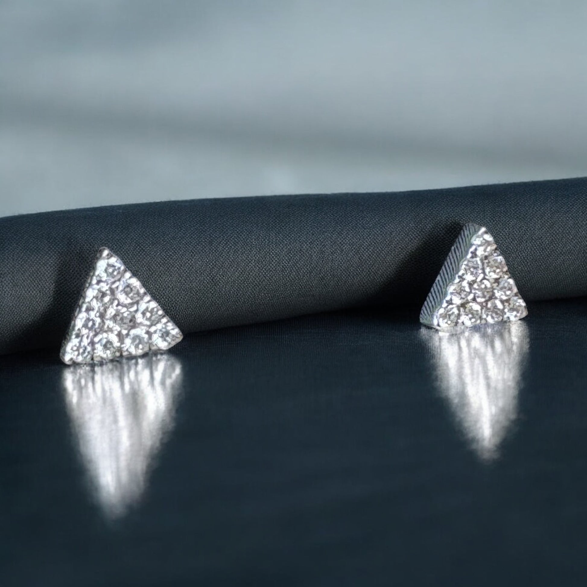 Mini Triangle Diamond Stud Earrings - 14K White Gold