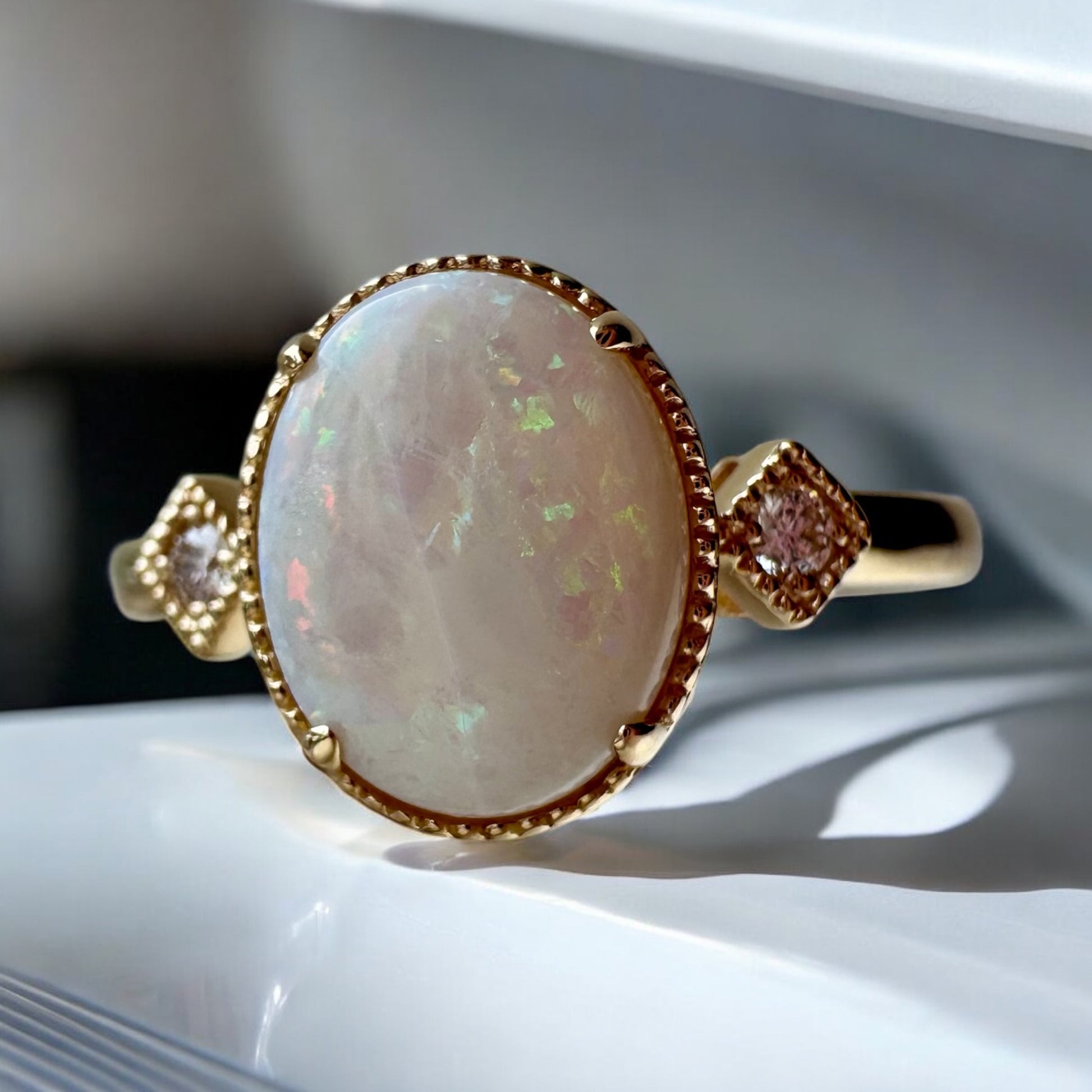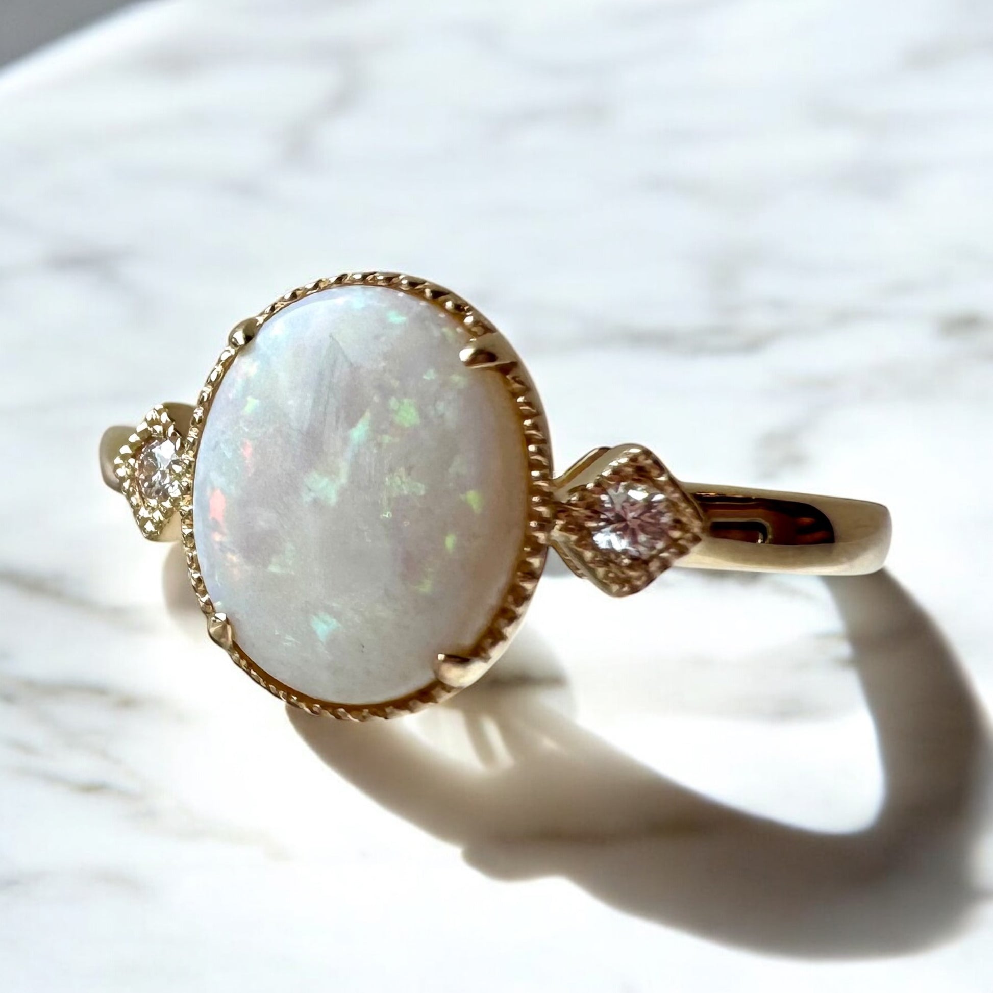 Oval Opal Ring with Diamond Accents - 14K Yellow Gold
