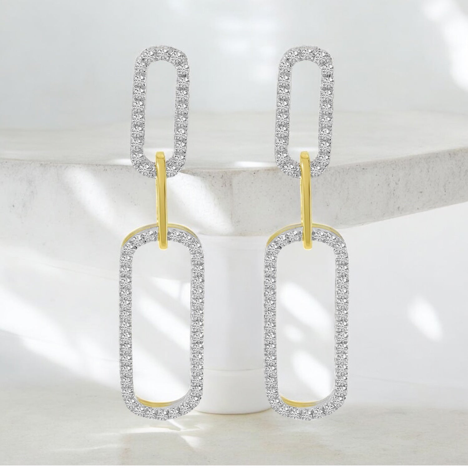 Paperclip Link Diamond Drop Earrings - 14K Yellow and White Gold