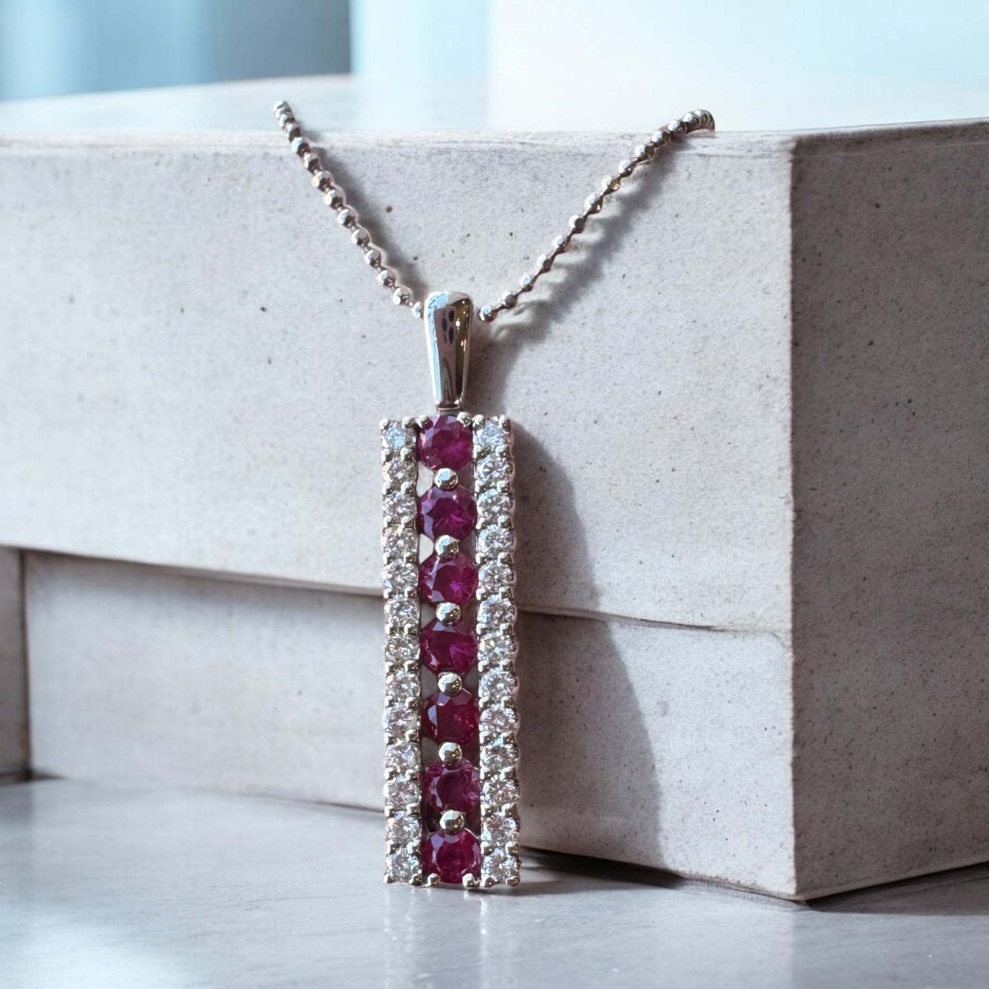 Ruby and Diamond Bar Drop Pendant - Platinum