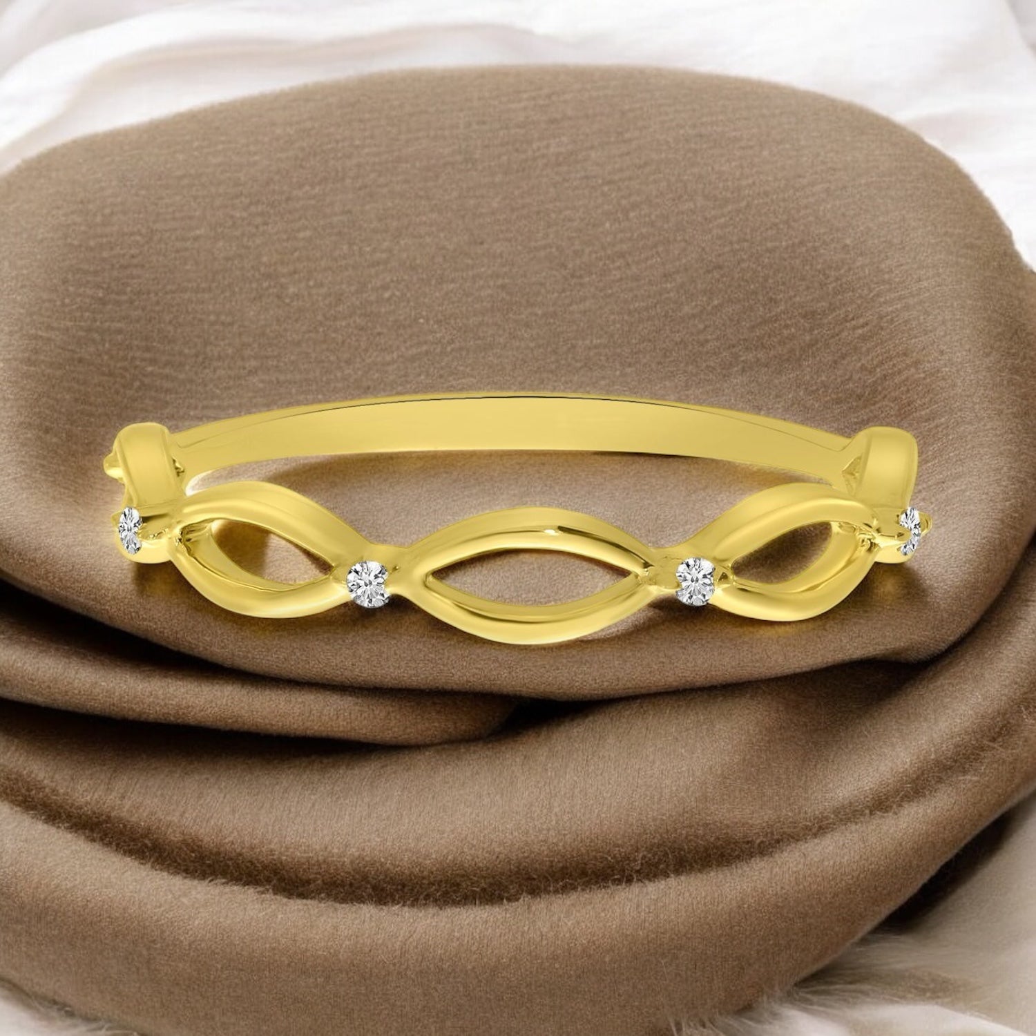 This 14K yellow gold band features 0.05 carats of spaced diamonds, offering a delicate sparkle that suits any occasion. Designed to be worn alone, as a wedding band, or stacked with other rings, it provides versatile elegance and comfort. Its timeless style supports your personal expression, making it a meaningful addition to your jewelry collection.